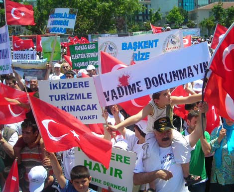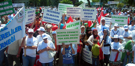 Mitingi organize eden İkizdere Derneği Başkanı Kadem Ekşi ise, "Burası bir tabiat harikası, bölgenin geleceği turizm üzerinedir. Ben turizmcileri ve doğa severleri oraya davet ediyorum, tam bir katliam yaşanıyor. Bir filin zücaciye dükkanına girmesi gibi bir durum var orada" diye konuştu.
