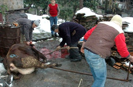 Göktürk FIRAT - Rize'de öğretmenlik yapan Recep Kaya, 2 yıl önce icat ettiği "Yıkmatik" ile Kurban Bayramı'nın 1. gününün ilk saatlerinde 5 kurban kesti. Kaya kendisi geliştirdiği buluşu sayesinde, 4-5 kişinin güçlükle devirdiği inekleri tek başına devirip kesebiliyor. 2 metre uzunluğunda bir su borusu ve ipten oluşan buluş, 1 ton ağırlığındaki bir hayvanı bile rahatlıkla devirebilme özelliğine sahip.
