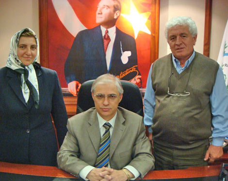 Rize İli Çamlıhemşin İlçesi Ülkü Köyü Muhtarı Nezahat Balcı ile Şenyuva Köyü Muhtarı Atilla Güneri, Vali Kasım Eseni Makamında ziyaret ettiler.
