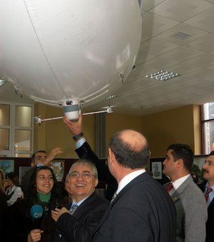 Davetliler sergi salonunu gezerken üzerlerinde ise uzaktan kumandalı Zeplin uçuruldu. Havada dolaştırılan zeplin bir ara yerel televizyonlara röportaj veren Vali Kasım Esen’in üzerine doğru inişe geçti. Korumasının müdahale ettiği Zeplin yön değiştirince kısa süreli panik yaşayan Vali Esen, “Bu şey başımda olunca konsantremi bozuyor” diye röportajını kısa tuttu.