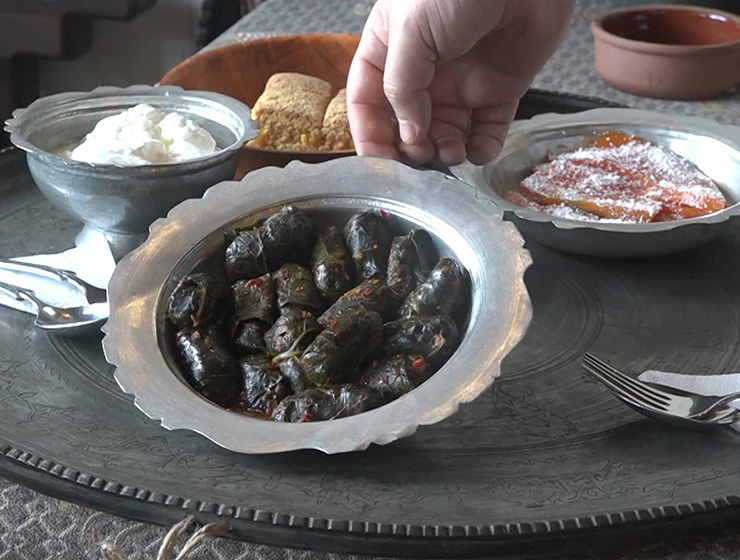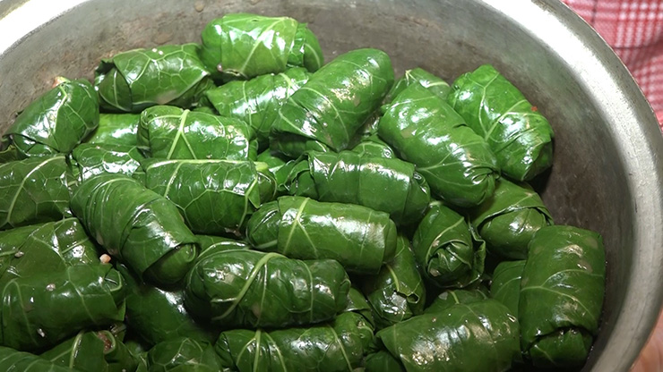 Bir tencerenin içerisine nizami olarak dizilen sarmalar pişirilmeye bırakılıyor. Son olarak piştikten sonra servis etmeye hazır olan sarmalar yanında yoğurt ve mısır ekmeği ile birlikte servis ediliyor.