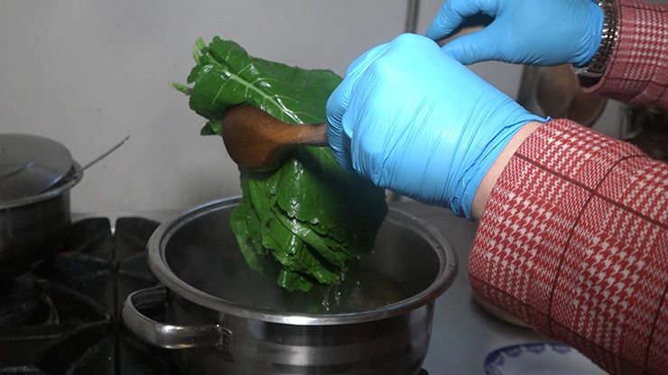 Taze alınan karalahanalar ilk etapta su da kaynatılıyor. Bu esnada lahananın iç harcı hazırlanıyor. Sonrasında baharatı da eklenen iç harç kaynatılmış karalahana yaprakları ile sarılıyor.