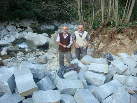 45 senedir Yeşilköy Asmalı ırmak mevkii dere kenarında bulunan büyük taşları, değişik bir teknikle yani eski usul ile kırarak, ailelerinin geçimlerini sağlıyorlar.