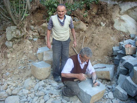 Rize İli Güneysu ilçesi Yeşilköy'de yaşayan İsmail ve Muhammet Karali kardeşler, Rize'nin son kesme taş ustaları olarak çalışmaya devam ediyorlar.