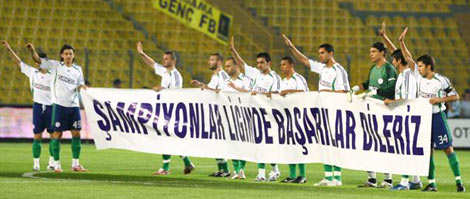 Sahaya, “Şampiyonlar Ligi'nde başarılar dileriz” yazılı pankartla çıkan Çaykur Rizesporlu futbolcular tribünlerden alkış aldı.