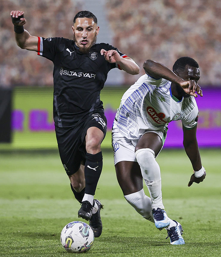 Çaykur Rizespor'da Emir Han Topçu, 90+1'de ikinci sarıdan kırmızı kart görerek takımını 10 kişi bıraktı.