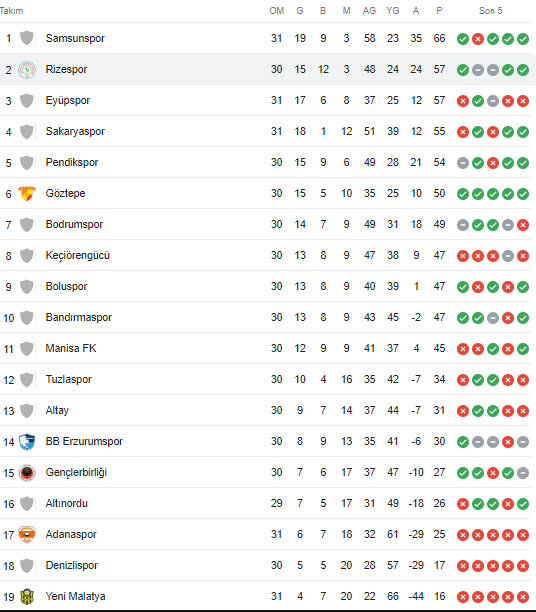 Bu maçın ardından Çaykur Rizespor 57 puanla 2. sıraya yerleşti. Sakaryaspor ise 55 puanla 4. sırada bulunuyor.