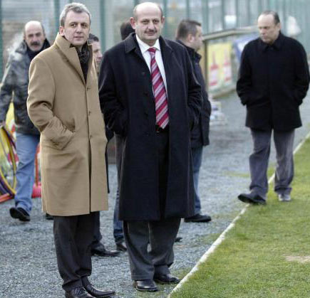Rize Belediye Başkanı Halil Bakırcı ile Rizespor Başkanı Kadir Çakır, Galatasaray maçı öncesi takımın son idmanını izleyerek ekibe moral verdiler.