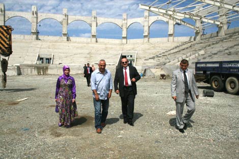 Rize Belediye Başkanı Halil Bakırcı, yapılmakta olan stat inşaatında incelemelerde bulundu.