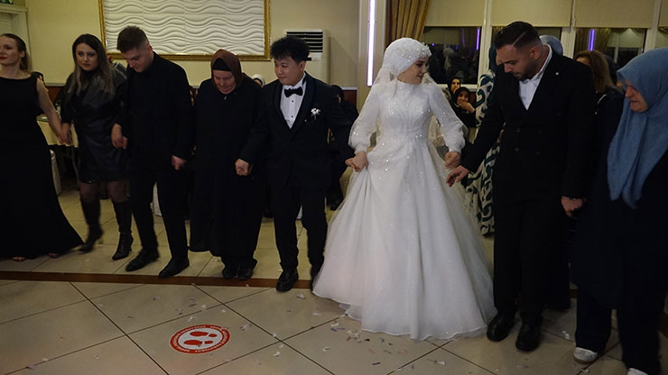 Ortak arkadaşlar vasıtası ile tanışan Rizeli gelin ile Çinli damat Çayeli ilçesinde dünya evine girdi