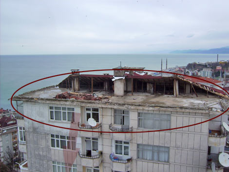 Şiddetli rüzgar Pazar'da Bağkur bloklarında hasara neden oldu.