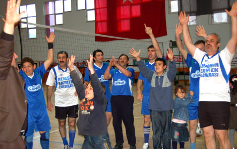 Daha sonra tribünden salona inen seyirciler Kaymakam Sezgin'i de aralarına alarak, tulum eşliğinde horon oynayıp şampiyonluğu doyasıya kutladılar.