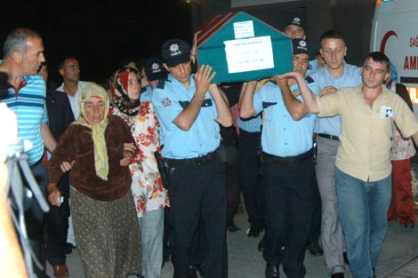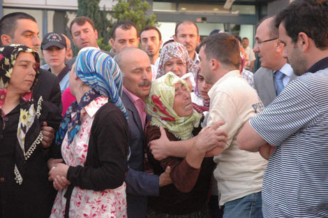 Şehit annesi Şefaat Çalık'ı teskin etmeye çalışan Trabzon Emniyet Müdürü Feridun Boz'un ağladığı gözlendi. Şehit polis memuru Nedim Çalık'ın cenazesi daha sonra ambulansla Rize'ye götürüldü.