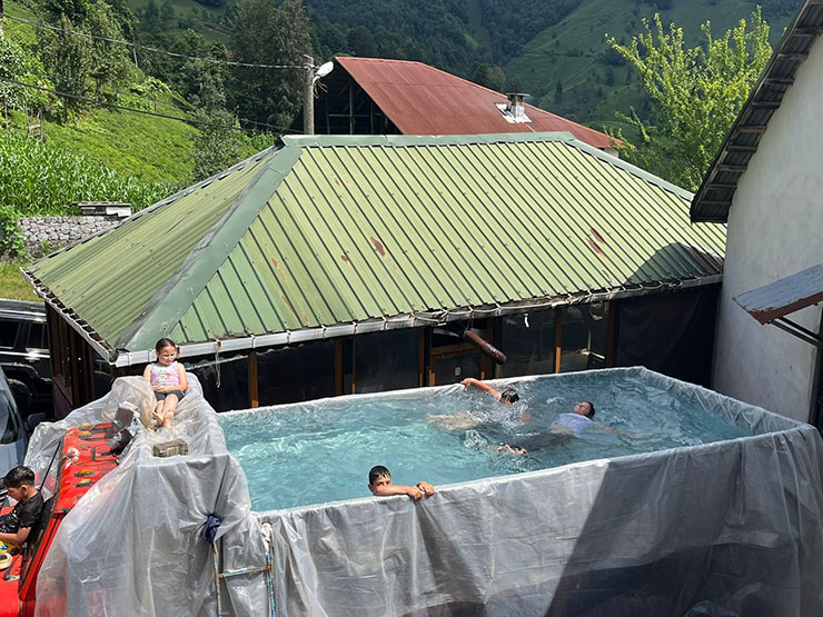 Rize'nin Ardeşen ilçesine bağlı Tunca Beldesi'de yaşayan Hızır Sofuoğlu, mahallede yaşayan çocukların sıcaktan bunaldığını fark edince farklı bir yönteme başvurdu. Sofuoğlu kamyon kasasını yaklaşık 6 ton su ile doldurdu ve bir metre derinlikte havuz oluşturdu.