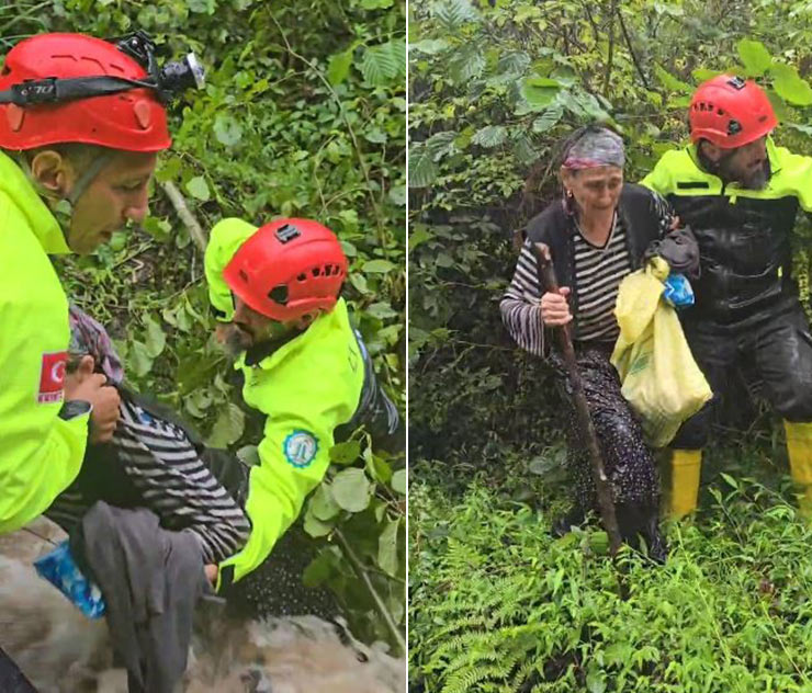 Çay tarlasında mahsur kalan kadın kurtarıldı