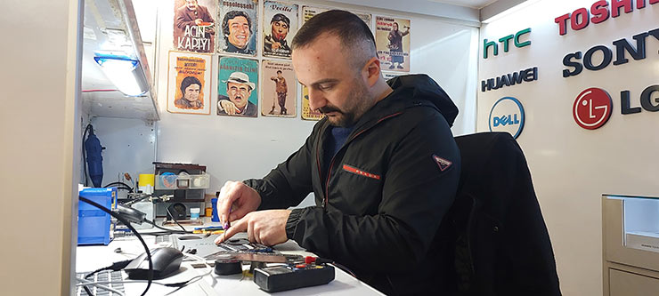 O anları ve yaşadığı paniği anlatan Gökhan Akyıldız, telefonun patlama ihtimalini düşünerek masasının alt kısmında bulunan göze koyduğunu dile getirerek "Müşterimiz geldi, telefonunun batarya son aşamaya gelmiş, şişmiş. Artık arka kapak u şeklinde olmuş. Daha önce de farklı bir şikayetten gelmişti. Telefonu aldık, tezgaha koyduk, tam yapacakken yemek siparişi verdim. Yemekten sonra rahat rahat yaparım dedim ama içimde de bir his oluştu. ‘Bu telefon patlayacak' diye düşündüm. Yemeğe başladım, tam yemek yerken hissiyatım gerçekleşti, telefon patladı. Düştüğü yerde de 2 çift ayakkabım vardı, onlar da yandı. Allah'a şükür canımızdan olmadık" dedi.