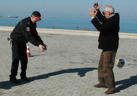 Bir de gözlükleri takıp hentbol oynamaya kalkınca izleyenler için komik görüntü oluşturdular.