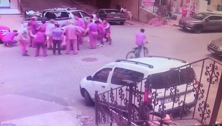 Geri gelen aracın kendilerine doğru geldiğini gören yayalardan biri çarpmanın etkisiyle yere düştü. Yere düşen yayalardan biri aracın kendini ezmesinden son anda kurtulurken biri aracın altında kaldı.