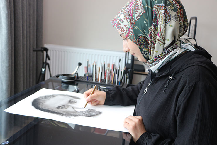 Rize'de yaşayan kadın ressam hiçbir teknik bilgi sahibi olmadan sadece hayal gücüyle yaptığı portrelerle hayran bırakıyor.