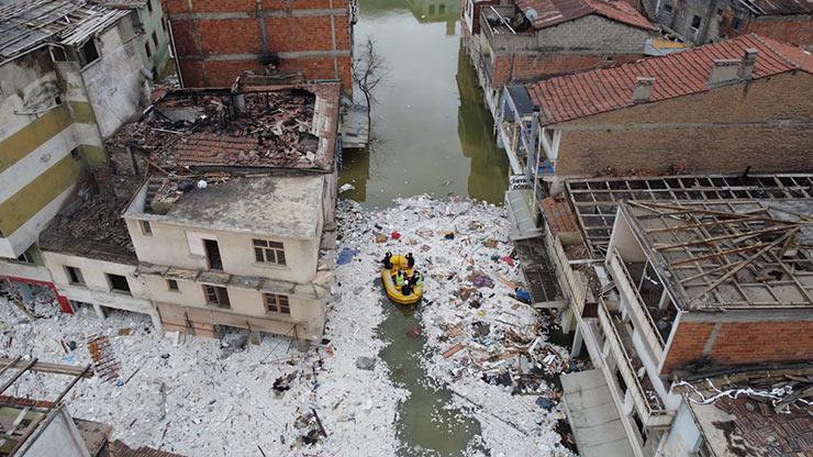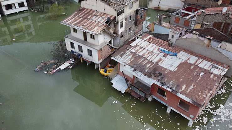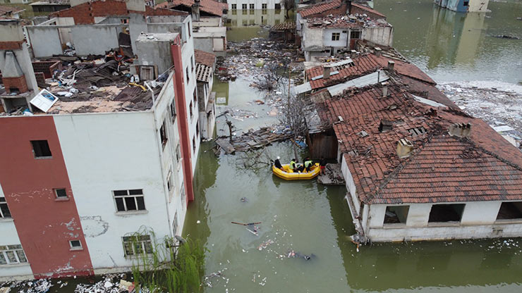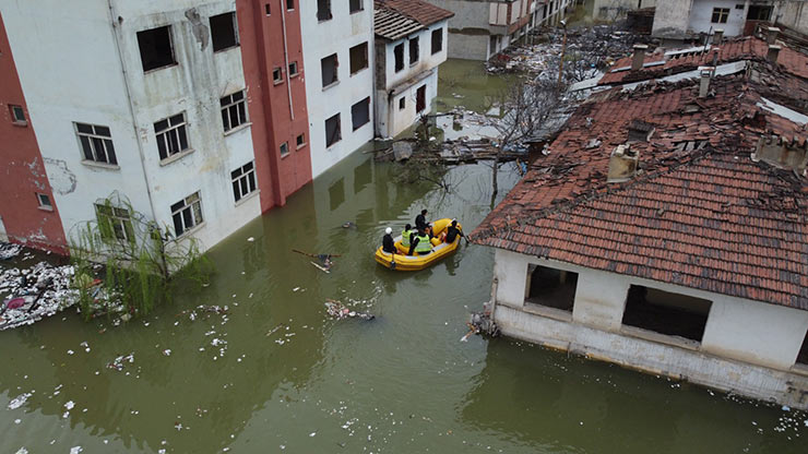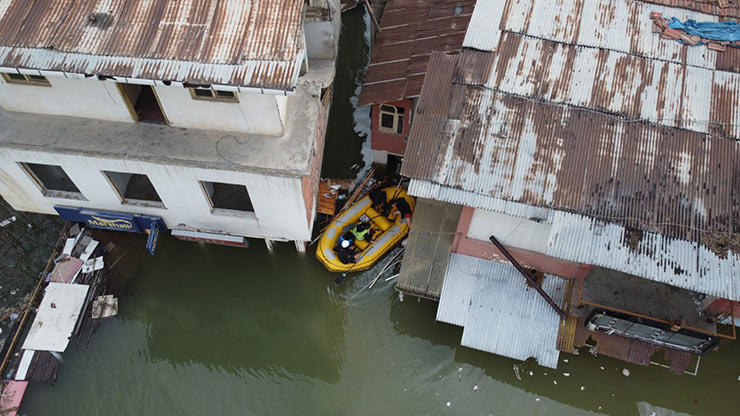 Sular altında kalan sokak hayvanları botlarla kurtarılıyor