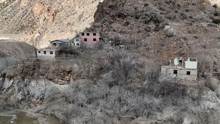 ARTVİN (İHA) - Artvin'in Yusufeli ilçesinde inşa edilen Türkiye'nin kemer baraj sınıfında 275 metrelik gövdesiyle en yüksek, dünyanın ise 5. en yüksek barajı olan Yusufeli Barajı'nın suların çekilmesiyle, su altında kalan Mutlugün Köyü'nün Uysallar Mahallesi ortaya çıktı.