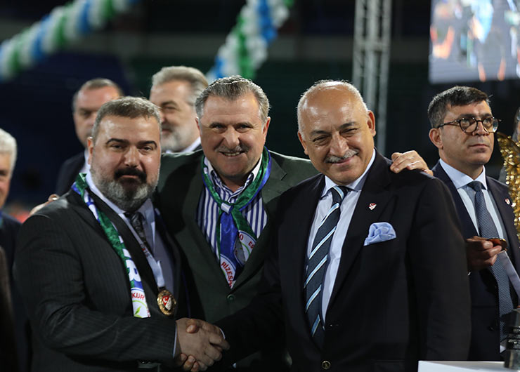 Büyükekşi, törende yaptığı konuşmada, Çaykur Rizespor'u tebrik ederek, "Süper Lig'e yeniden hoş geldiniz, sefalar getirdiniz. Çaykur Rizespor Kulübü Başkanı'mızı, yönetim kurulu üyelerini, teknik ekip ve futbolcuları tebrik ediyorum. İnşallah önümüzdeki yıl Süper Lig'e renk katar, güzellik getirirsiniz." dedi.