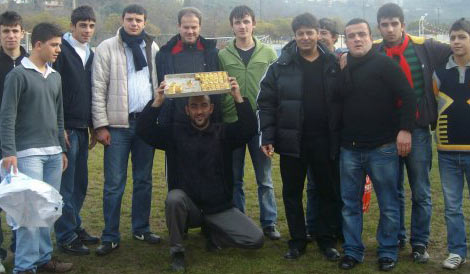 Pazarspor'un 'Genç Korsanlar' taraftar grubu, futbolcu ve teknik heyete idman sonrası baklava ikram ederek Çorumspor maçında başarı dilediler.