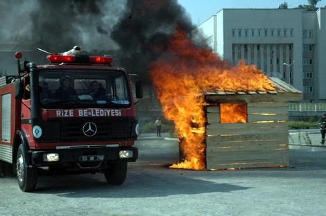 İtfaiye Haftası dolayısıyla Rize Belediyesi yangın söndürme tatbikatı düzenledi. Rize Valisi Kasım Esen, Belediye Başkanı Halil Bakırcı, Rize Jandarma Alay Komutanı Albay Erol Çelik, bürokratlar, öğrenciler ve vatandaşların izlediği tatbikatta aksilikler bitmedi. Tatbikatta ilk olarak yanmakta olan bir LPG tüpü söndürüldü. İtfaiye erinin ıslak battaniye ile tüpü söndürme çalışması ilk denemede sonuç vermedi. İkinci denemede de battaniye kaldırılır kaldırılmaz tüpten alevler yükseldi. Üçüncü denemede tüp