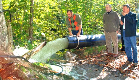 Pazar Belediye Başkanı Hikmet Hatırnaz, döşenen boruların son noktasına su verecek vanayı bugün açarak mevcut çalışmaları test etti.