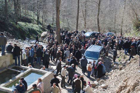 Pazar'ın Tomaslı içme suyu Projesini yerinde görmek için bugün 100 araçlık konvoy eşliğinde bölgeye giden kalabalık, suyun deneme akışını izledi.
