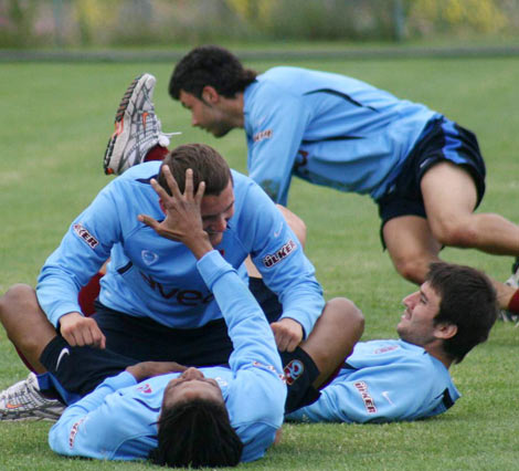 Dorukkaya Green Park Otel'de hazırlıklarını sürdüren Bordo-mavili takımda Tayfun Cora dışında sakat oyuncu bulunmazken, midesindeki rahatsızlığı nedeniyle son iki gündür antrenmanlara çıkmayan Egemen Korkmaz da takımla birlikte sabahki çalışmaya katıldı.