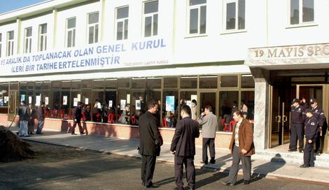 Bugün yapılması gereken ancak ileri bir tarihe ertelenen Trabzonspor Genel Kurulu'nun yapılacağı spor salonu önünde gerginlik yaşandı.