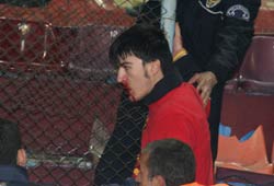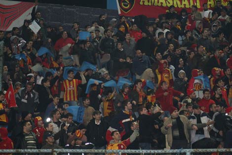 Bordo-mavili taraftarlar, konuk takım taraftarların bulunduğu bölüme yabancı madde atarken, Galatasaraylı taraftarlar koltukları sökerek kendilerini korumaya çalıştı.