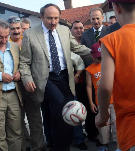 Bayındırlık ve İskan Bakanı Faruk Özak, beraberindeki milletvekilleriyle birlikte ziyaret ettiği Trabzonspor kampında top oynayıp futbol şovu yaptı.