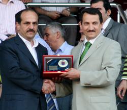 Karşılaşma öncesinde 1. Karadeniz Oyunları'nda iyi bir organizasyona imza atılması nedeniyle Gençlik ve Spor Genel Müdürü Mehmet Atalay'a Bordo-mavili Kulübün Başkanı Nuri Albayrak tarafından bir plaket verildi.