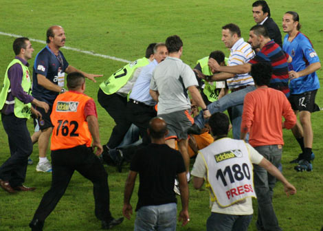 Karşılaşmanın uzatma dakikalarında, Sivasspor'un kazandığı bir serbest vuruş sonrası ceza sahasında iki takım futbolcuları arasında gerginlik yaşandı. Bu sırada sahaya giren Bordo-mavili bir taraftar, Sivassporlu futbolcu Mehmet Yıldız'a tokat attı. Bunun üzerine saha bir anda karışırken, birçok taraftar da tribünlerden atlayarak sahaya girdi.