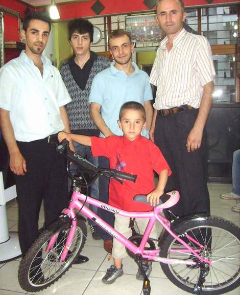 Trabzonda bir erkek kuaförü, yaz tatilinde kendisine traş olan öğrencilerden birine çekilişle bisiklet hediye etti.