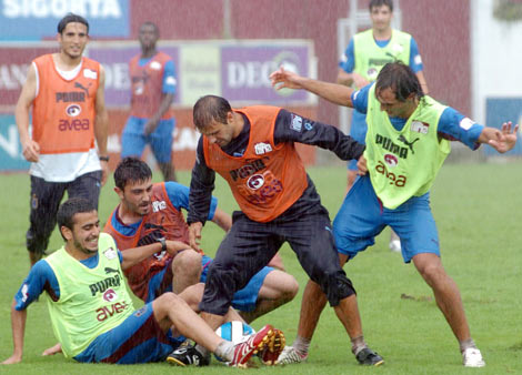 Trabzonspor, UEFA Intertoto Kupası 3. Turu'nda Romanya'nın FC Otelul Galati takımıyla deplasmanda oynayacağı maçın hazırlıklarına yoğun yağan yağmur altında bu sabah yaptığı antrenmanla başladı.