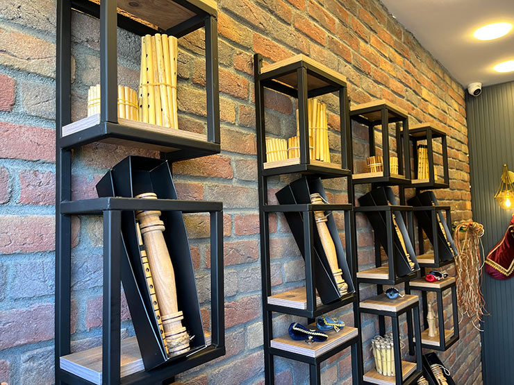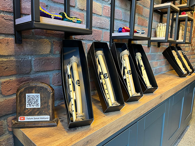 Rize Merkez'de bulunan bir tulum dükkânında ziyaretçilere tulum hakkında bilgiler veriliyor ve isteyenlere çibun aleti satılıyor.