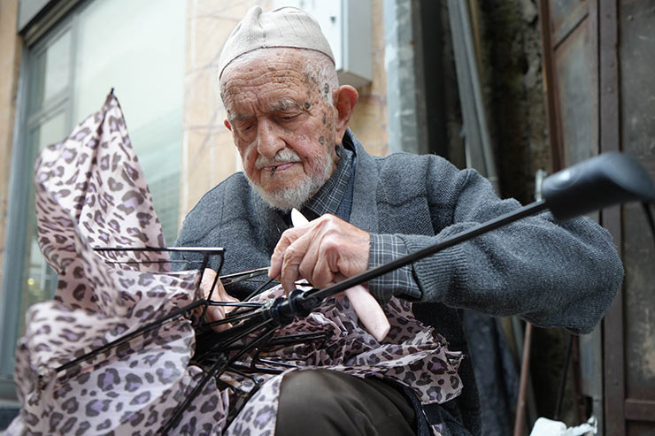 Türkiye'nin en yaşlı şemsiye tamircisi
