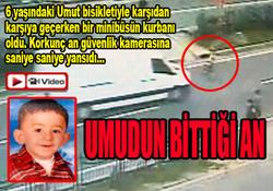 Rize'de 6 yaşındaki Umut bisikletiyle yoldan karşıya geçerken minibüsün çarpması ile hayatını kaybettiği kaza güvenlik kamerasına yansıdı.