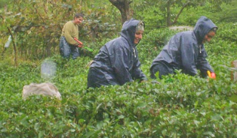 Rize’nin yüksek kesimlerinde hala çok sayıda vatandaşın çay tarlasında yağmur altında çalıştığı gözlenirken bazı üreticilerin bir tona yakın günlük çay satışı gerçekleştirmesi dikkat çekiyor.
