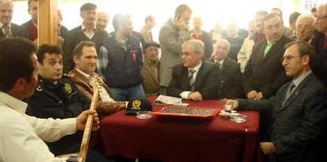 Yasin BAŞALMAZ & Dilek ASLAN - Rize Valisi Kasım Esen, kendi başlatmış olduğu “Yaşam Boyu Eğitim” projesi kapsamında il genelinde kahvehanelerde seminerler düzenlenmeye devam ediyor. Vali Esen bu kez de Ardeşen ilçesindeki merkez kıraathanesindeki seminere katıldı. Vali Esen, buradaki toplantının sonunda Ozan Süleyman Sarı’nın Bilecik yöresinden türkü söylemesine çok duygulandı ve gözleri yaşardı.