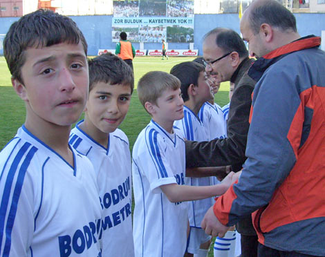 Pazar A. Mesut Yılmaz İlköğretim Okulu Minikler Futbol takımına kupasını veren Rize Valisi Zekeriye Şarbak tüm oyuncuları tek tek tebrik ederek başarı diledi.