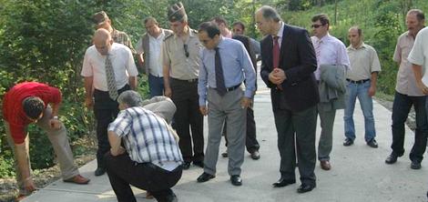 Artvin Valisi Aydoğdu, Arhavi'de KÖYDES projeleri kapsamında yapılan köy yolu genişletme ve betonlama çalışmalarını yerinde inceledi.