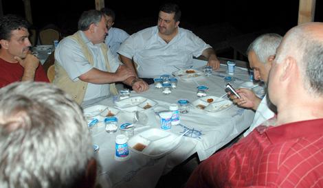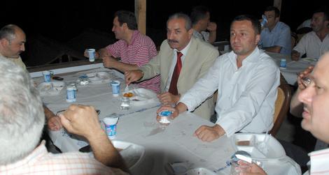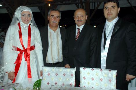 Tulum eşliğinde horon oynayan davetliler düğünde bol bol stres atarken çevre il ve ilçelerden törene katılan çok sayıda belediye başkanı, partili ve iş adamı da Pınar Alabalık Tesisleri'nin geniş iç mekânında sohbet etme imkânı buldular.