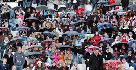 23 Nisan Ulusal Egemenlik Çocuk Bayramı, Trabzon'da yağmur altında kutlandı. Törenler sırasında öğrenciler ıslanırken, hemen arkalarındaki öğretmenler ve protokolün şemsiye altında yağmurdan korunmaya çalışması ilginç görüntüler oluşturdu.