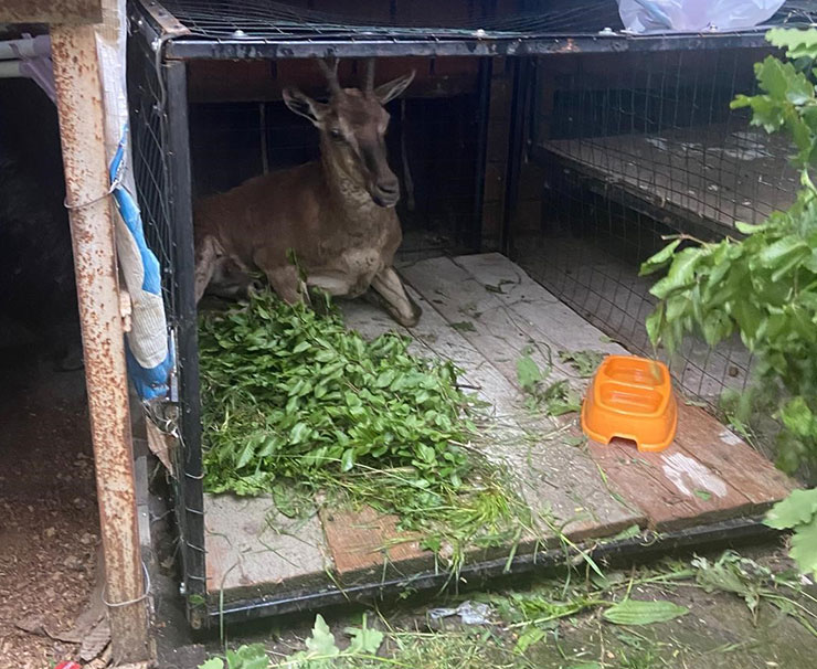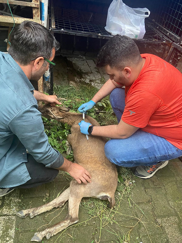 Yol kenarında bulunan yaralı yaban keçisi tedavi için Kars’a sevk edildi