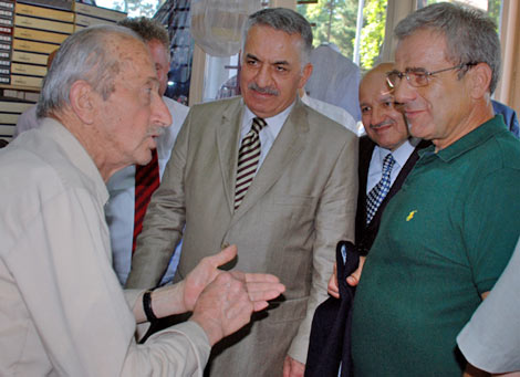 Hasan Kemal Yardımcı, Rizespor Kurucusu Muharrem Kürkçü ile Rizespor üzerine sohbet ederken Başbakan Yardımcısı Hayatı Yazıcı ve Rize Milletvekili Lütfü Çırakoğlu kendilerini dinliyor