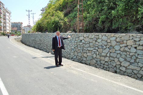 Rize'nin Pazar İlçesinde, Rize istikametinden merkeze giren bağlantı yolunda Karayolları tarafından yaptırılan istinat duvarı inşaatı bitirildi.